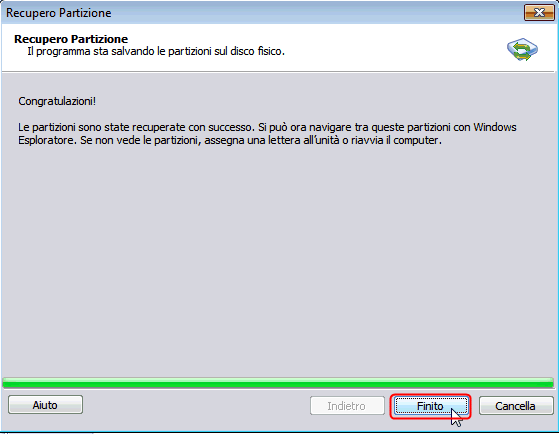 - Lo stato finale dopo il recupero può essere visualizzato nella barra grafica. La partizione con croce blu è la partizione che si sta per recuperare.