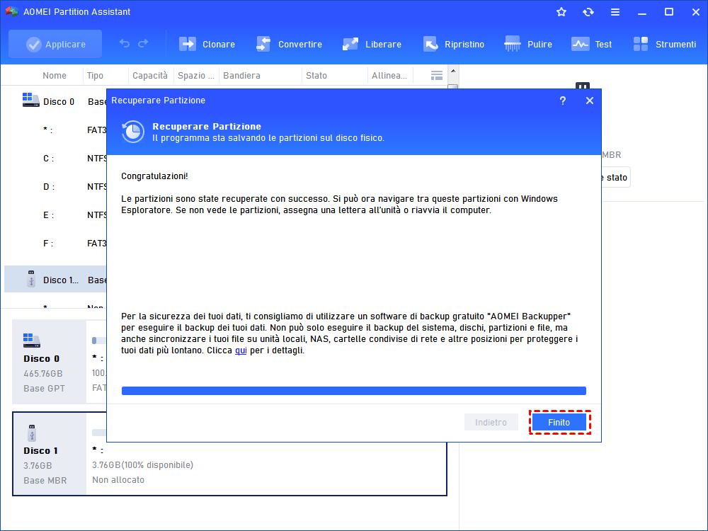 Se hai perso o eliminato accidentalmente una partizione, puoi rivolgerti a AOMEI Partition Assistant, che ti consente di recuperare la partizione persa o eliminata e i dati contenuti in essa.