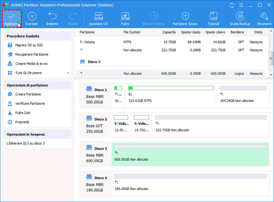 Seguendo i passaggi sopra indicati, puoi cancellare facilmente e rapidamente una partizione. Questa funzione è principalmente utilizzata se desideri eliminare completamente tutti i dati su un'unità e liberare ulteriore spazio libero.