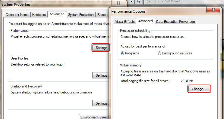 2. Choose the Performance tab, click Settings. Then choose the Advanced Settings tab like in the picture below: