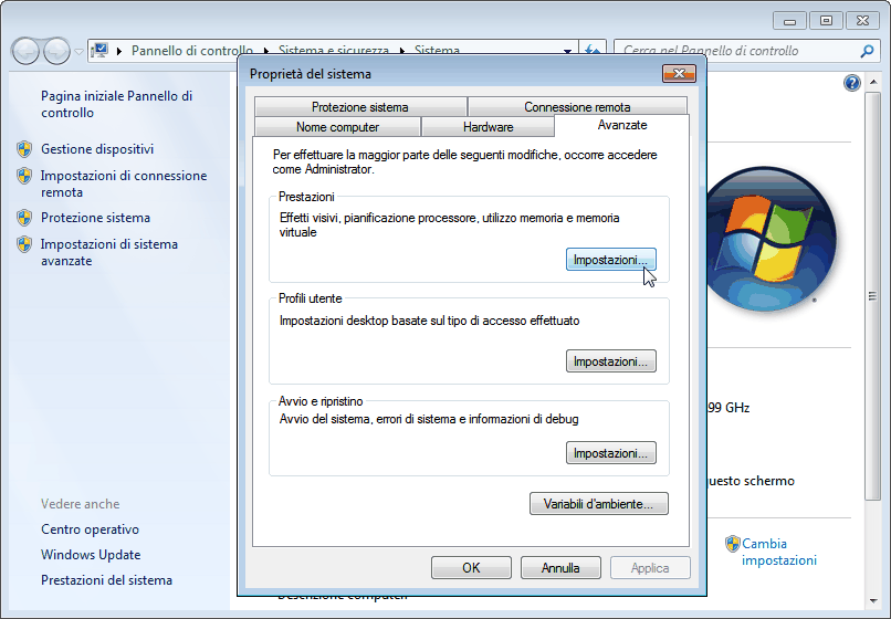 Nella finestra popup fa clic su "Impostazioni..." sotto "Avanzate".