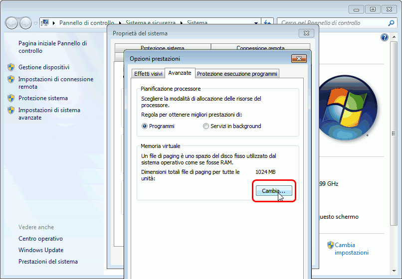 Passo 2. Nella finestra successiva, scelga "Avanzate" e quindi fare clic su "Cambia..."