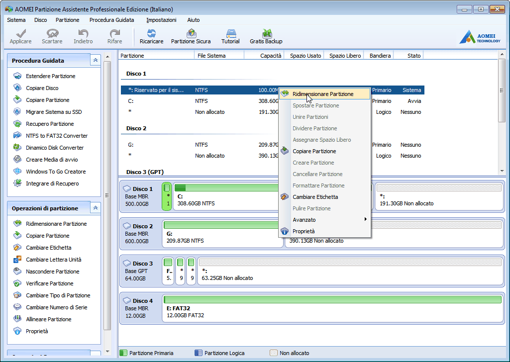 AOMEI Partition Assistant console Principale