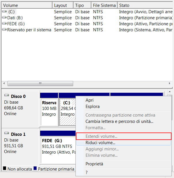 Per soddisfare il bisogno degli utenti, Microsoft ha rilasciato uno strumento incorporato chiamato Gestione disco che può aiutare gli utenti a eliminare/formattare/creare partizioni. Ha aggiunto due funzioni: ridurre il volume e estendere il volume a Gestione disco in Windows 11,10, 8, 7, XP e Vista. I miglioramenti rendono il ridimensionamento della partizione realizzabile in teoria. Gradualmente, questo strumento è ampiamente utilizzato dagli utenti per gestire le loro partizioni. Tuttavia a volte possiamo trovare la funzione "Estendi volume" non attivo. Perché non possiamo usare la funzione per estendere il volume in Windows?