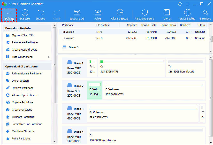 3. È possibile visualizzare in anteprima le operazioni in Operazioni in sospeso prima di applicarle.