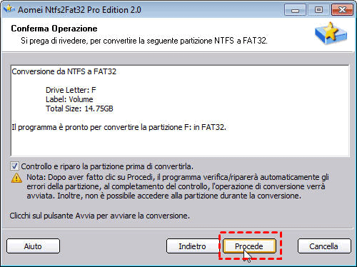 Metodo 1: Convertire NTFS in FAT32 senza perdita di dati con il software professionale