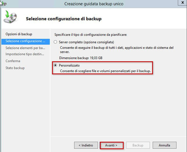 2. Clonare (Windows Server 2008) partizione tramite Windows Server Backup