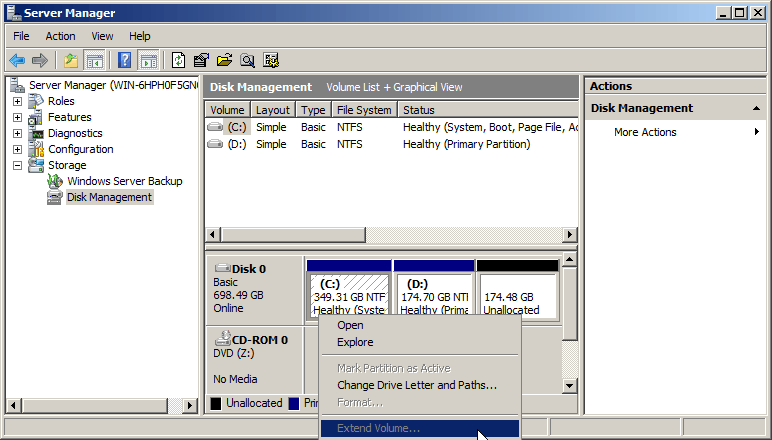 In Windows Server, è possibile che si verifichi il problema di estendere il volume in grigio.