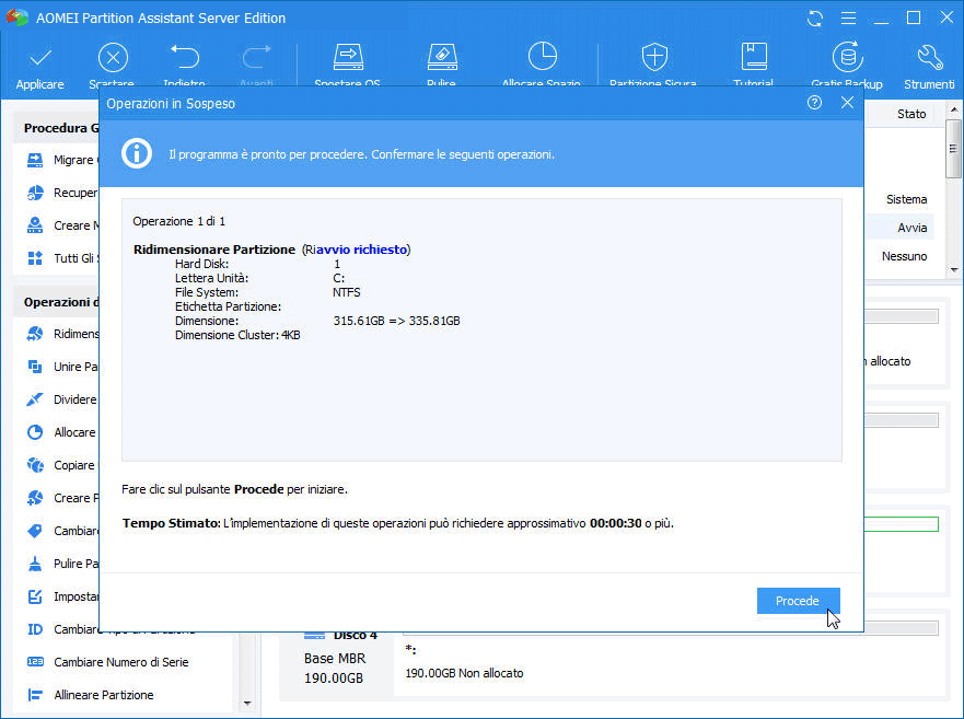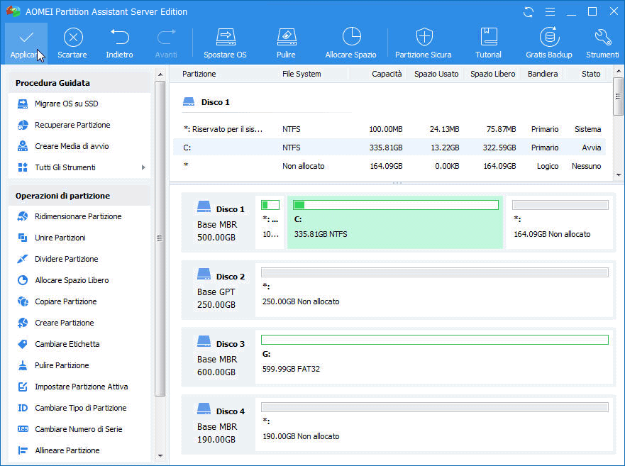 In una parola, AOMEI Partition Assistant Server è progettato per i server che gestiscono il disco e la partizione. È utile ridimensionare ed estendere la partizione e rendere ombreggiato il volume di estensione.