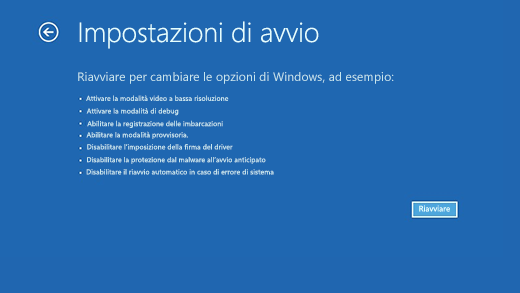 Passo 2. Quando appare la schermata "Impostazioni di avvio", fare clic su "Riavvia".