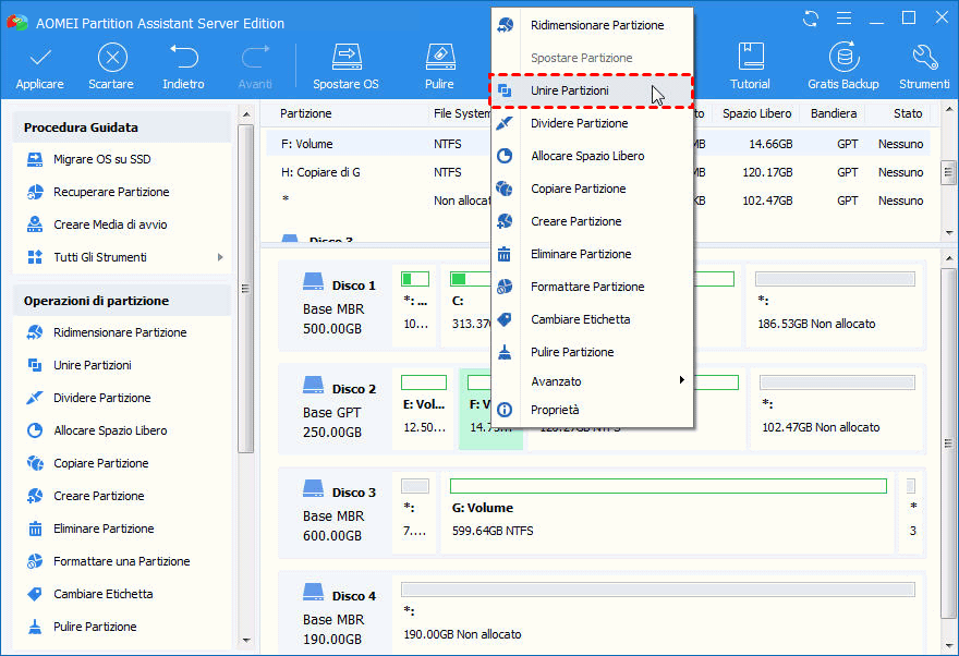 Unire spazio non allocato per Windows Server con AOMEI Partition Assistant Server