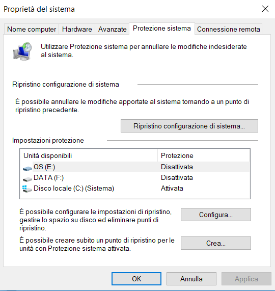 Il Ripristino di sistema serve per risolvere i problemi del PC, ma occupa molto spazio. Puoi disabilitare il ripristino di sistema per liberare spazio.