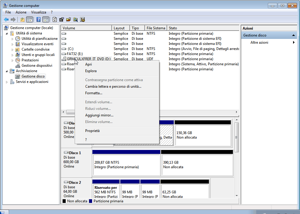 Gestione Disco è uno strumento in Windows 10 che è in grado di eliminare/estendere/creare/formattare la partizione. È possibile immettere lo strumento facendo clic con il pulsante destro del mouse su Computer> Gestione> Gestione disco.