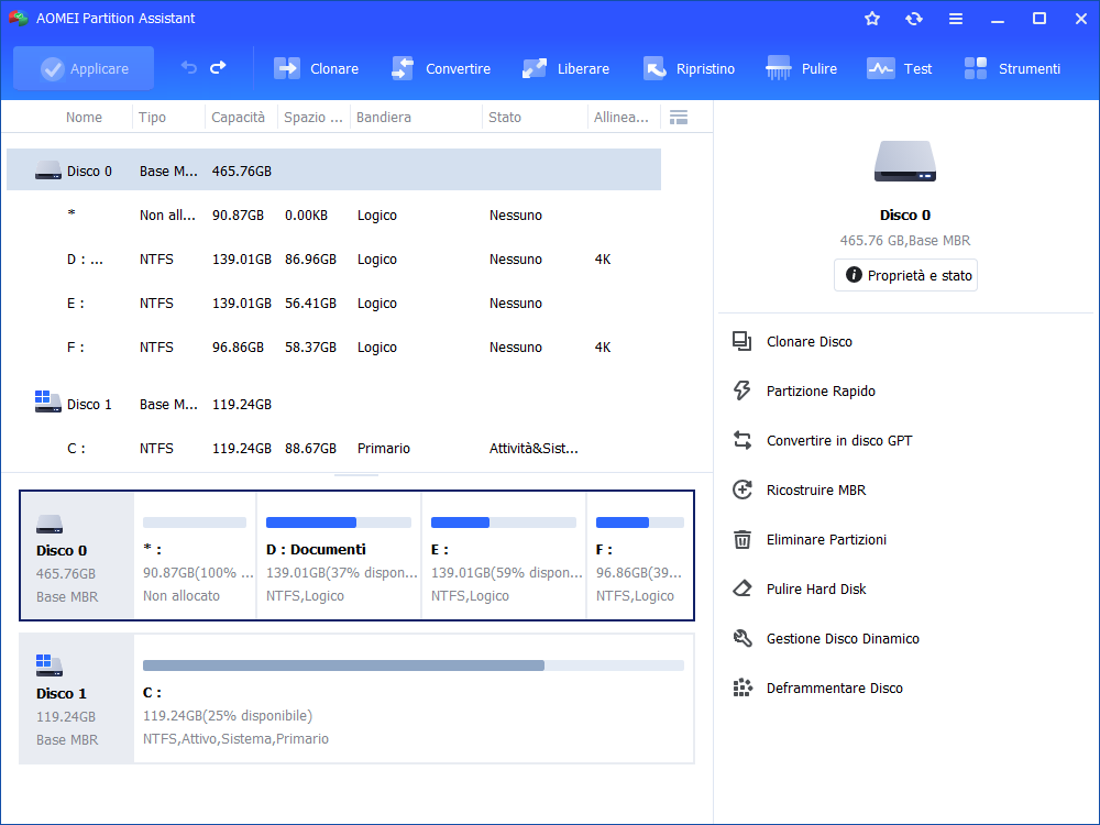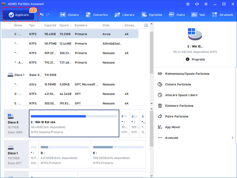 AOMEI Partition Assistant è un ottimo programma potente per gestire i dischi e le partizioni. Può ridimensionare partizione, creare partizione, eliminare partizione, formattare partizione, ecc. E supporta quasi tutto il sistema Windows, indipendentemente dal sistema PC Windows o da Windows Server. Client diversi hanno versioni diverse per ottenere prestazioni migliori.