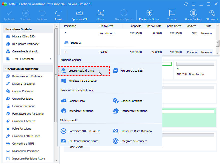 AOMEI Partition Assistant offre diverse funzioni per aiutarti a gestire il tuo computer e disco. Puoi utilizzarlo per riportare l'USB allo stato normale dopo aver riparato il PC. Se effettui l'upgrade alla versione professionale, potrai usufruire di ulteriori funzionalità, tra cui la conversione del disco di sistema tra gli stili di partizione MBR e GPT, l'utility SSD Secure Erase Wizard, la migrazione del sistema operativo tra dischi MBR e GPT con un avvio senza problemi, ecc. Inoltre, puoi usarlo per riparare altri problimi di computer, come l'errore "Percorso non disponibile. Impossibile accedere ad D:\ (o E:\, F:\, G:\ e altri dischi). Parametro non corretto", "Percorso non disponibile - C:\boot", "Hard Disk mostra solo metà della capacità" e così via. Se utilizzi un dispositivo con Windows server, si prega di utilizzare AOMEI Partition Assistant Server.