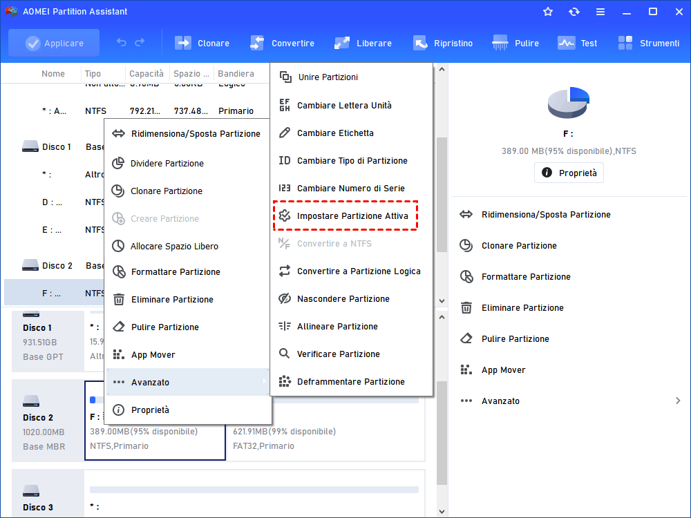 Metodo 2. Impostare la partizione attiva con AOMEI Partition Assistant