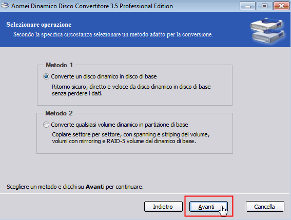 AOMEI Partition Assistant è un software di gestione dei dischi e dei volumi dinamico affidabile ed efficiente che funziona con Windows 10/8.1/8/7/Vista/XP/2000 e Windows Server 2000/2003/2008/2011/2012. Con la sua funzione integrata Convertitore di Dischi Dinamici, puoi convertire un disco dinamico in disco base senza perdita di dati. Vediamo come funziona: