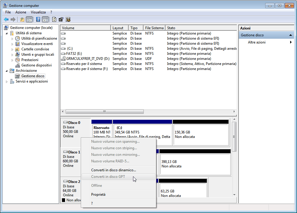 Metodo 2: Convertire MBR in GPT tramite Gestione disco di Windows 10