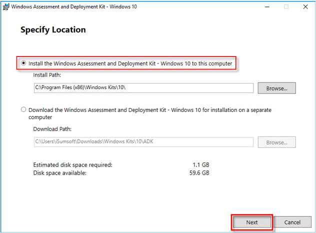 Passo 1. Scarica Windows ADK per Windows 10, puoi ottenerlo dal suo sito ufficiale qui. Contiene le utilità della riga di comando CopyPE e MakeWinPEMedia.