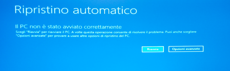 1. Nessuna operazione fino al riavvio automatico del computer. Verrà visualizzato il messaggio che sta tentando di eseguire il ripristino e verrà visualizzata la schermata successiva. Scegli "Opzioni avanzate".