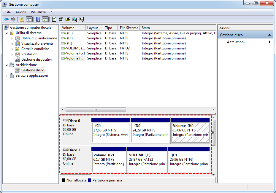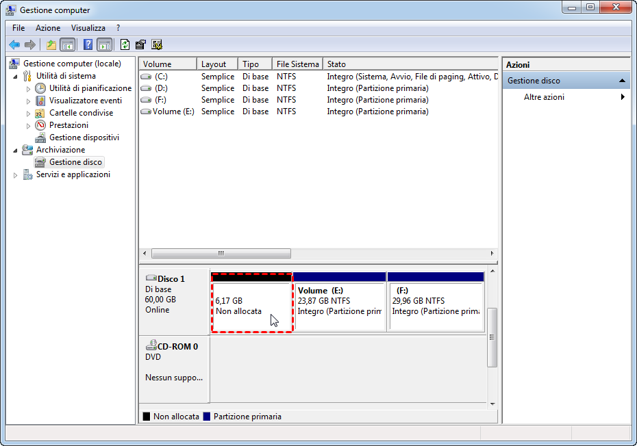 Soluzione 1. Unire due partizione con Gestione Disco (Eliminerà tutti i dati sulla partizione)