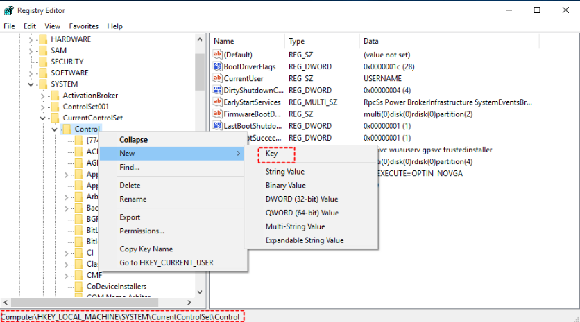 HKEY_LOCAL_MACHINE\SYSTEM\CurrentControlSet\Control