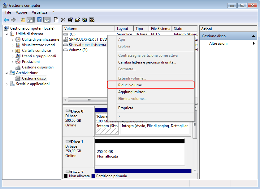 1.È possibile ridurre solo i volumi di base che non dispongono di file system o utilizzano il file system NTFS.