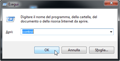 Passo 1. Premere "WIN" + "R", digitare "control" e fare clic sul pulsante "OK" per aprire il pannello di controllo.