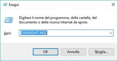 Premi contemporaneamente il tasto Windows e il tasto R per aprire la finestra "Esegui", digita "diskmgmt.msc" nella casella vuota e premi il tasto Invio (o clicca su OK).