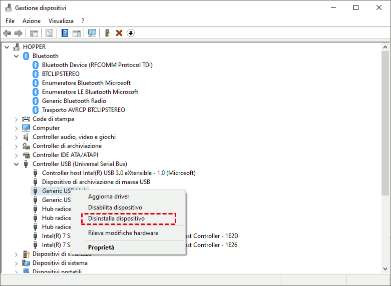 Nota: all'inizio è possibile provare l'opzione "Aggiorna driver", se non funziona, si può provare a disinstallare e reinstallare.