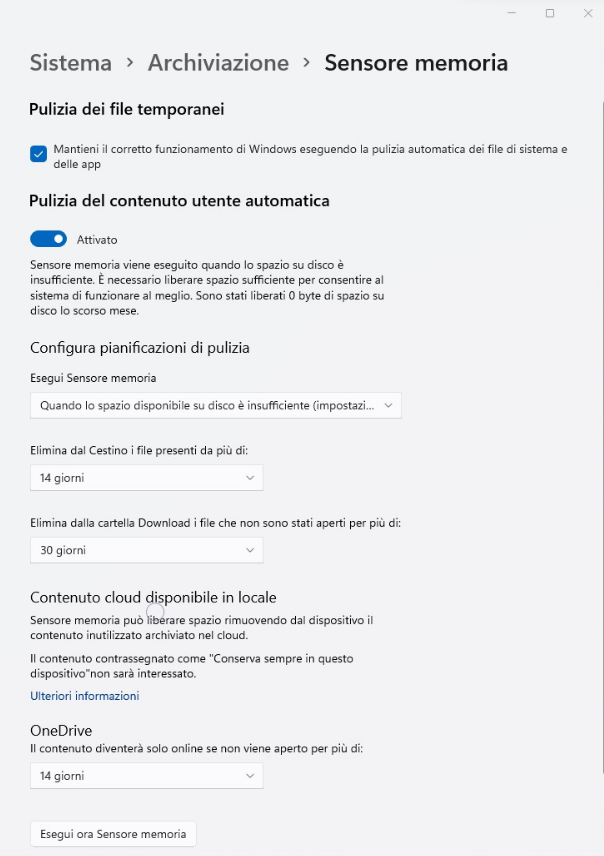 Passo 3. Attiva la funzione Storage Sense. Seleziona il programma di pulizia automatica desiderato.