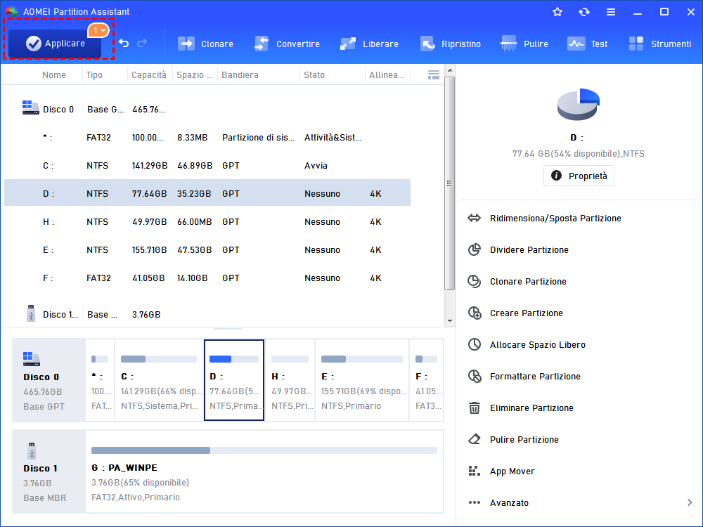 Spero che questi metodi possano aiutarti a risolvere il problema di "Partizione GPT non riconosciuta" in Windows 7. E consiglio vivamente AOMEI Partition Assistant per te, Oltre a creare partizioni, consente anche di molti altre formattare/unire/dividere/pulire/ridimensionare/spostare partizioni, creare usb bootable e Wintogo, ed ecc. Inoltre, può anche risolvere altri problemi potresti aver riscontrato, come Hard Disk 4TB mostra solo 2TB; Impossibile accedere ad D:\ (o E:\, F:\, G:\ e altri dischi), parametro non corretto; Recuperare Partizione Cancellata; e così via. Non esitare a utilizzarlo per gestire e proteggere i tuoi dischi. Se sei un utente Server, puoi scegliere l'edizione Server di questo strumento.