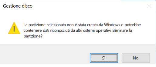 In questa situazione, quando gli utenti tentano di gestire la partizione non riconosciuta, Windows mostrerà un messaggio "La partizione selezionata non è stata creata da Windows e potrebbe contenere dati riconosciuti da altri sistemi operativi. Eliminare la partizione?". Puoi ricreare una partizione per provare.