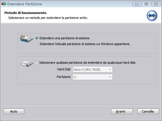 Passo 2. Nella finestra pop-up sono disponibili due opzioni disponibili. Qui prendiamo "Estendere una partizione di sistema" per esempio.