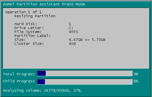 When the program reboots into the WinPE environment and detects system environment changes, it will quit the WinPE environment and then reboot into PreOS mode to continue operations.