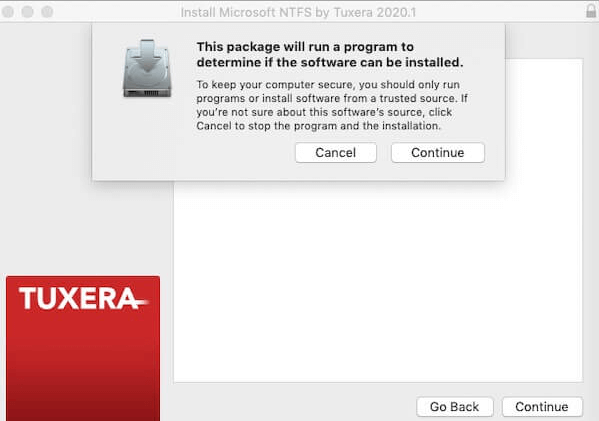 Step 3. Click Open to launch the installer, then follow the prompts to complete the installation and start using Tuxera NTFS on your Mac.