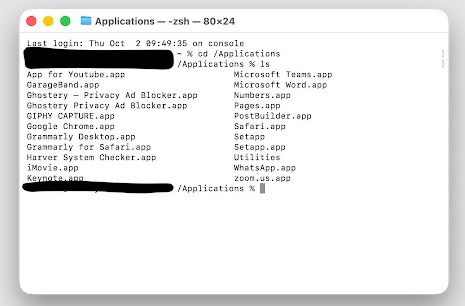 Step 3. Type ls and press Return to list all applications currently installed.