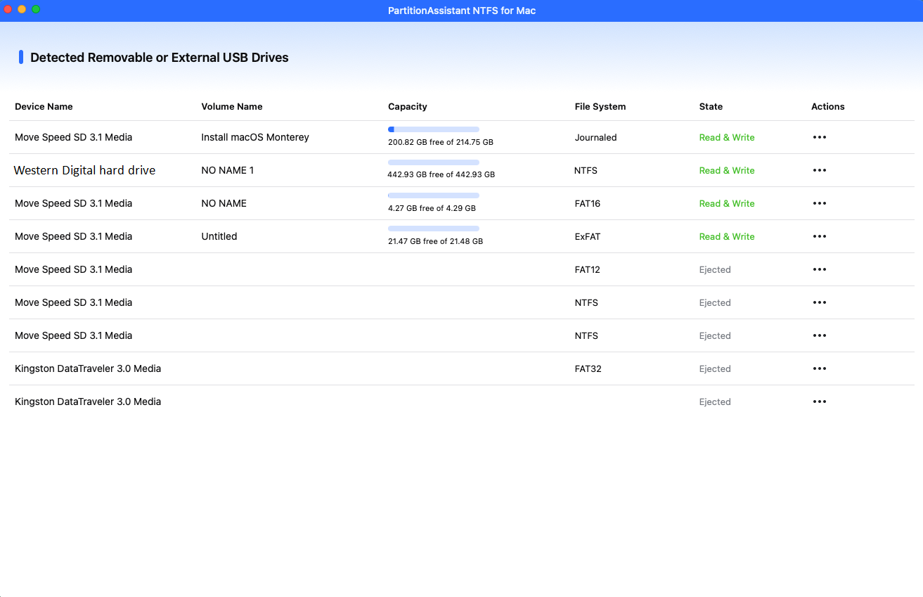 Step 2. The connected, removable, and My Passport NTFS drive will be mounted and listed.
