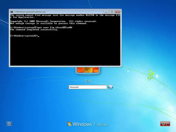 Note: After logging in, remember to rename the sethc.exe back to cmd.exe.