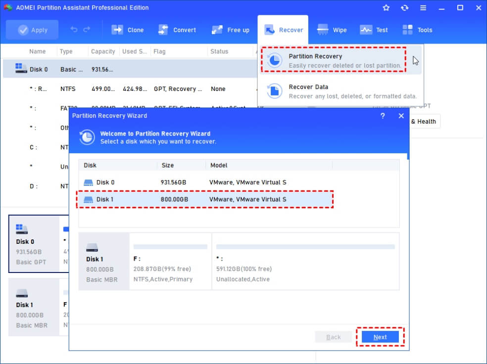 As long as there is no data overwritten on the deleted partition, AOMEI Partition Assistant Recover tool will recover the lost or deleted partition and data fast and completely.