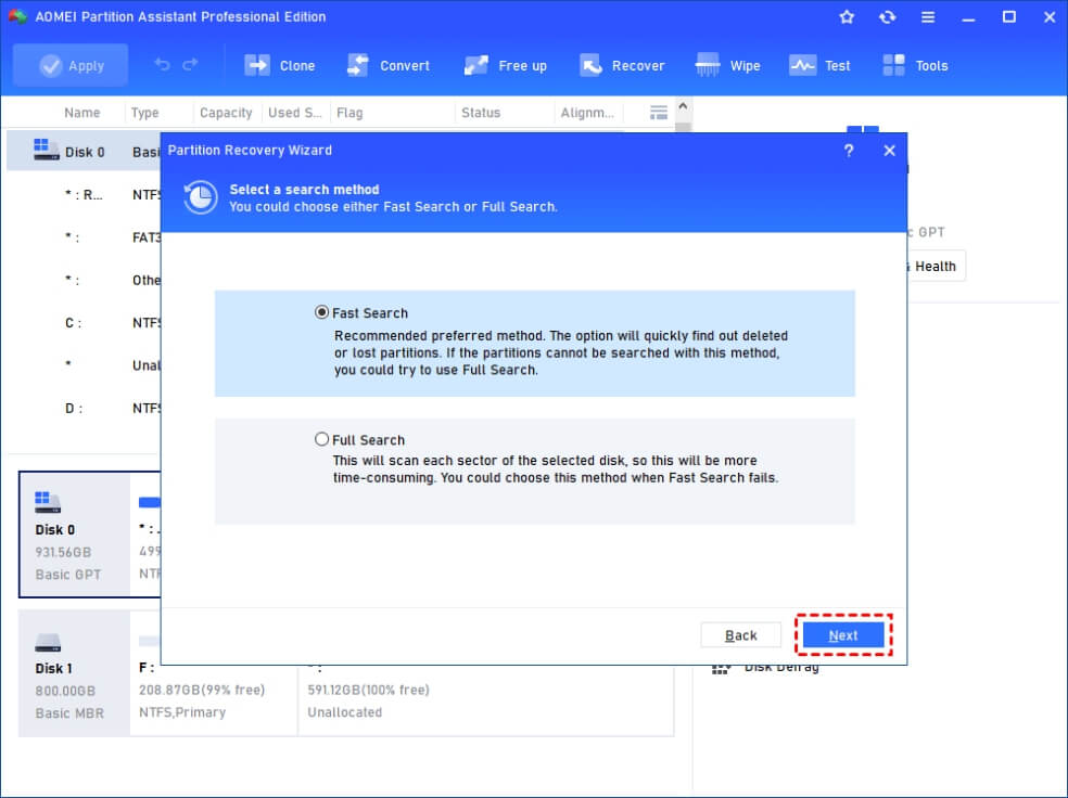Select Fast Search ( recommended and faster). To scan more completely, you can choose Full Search.