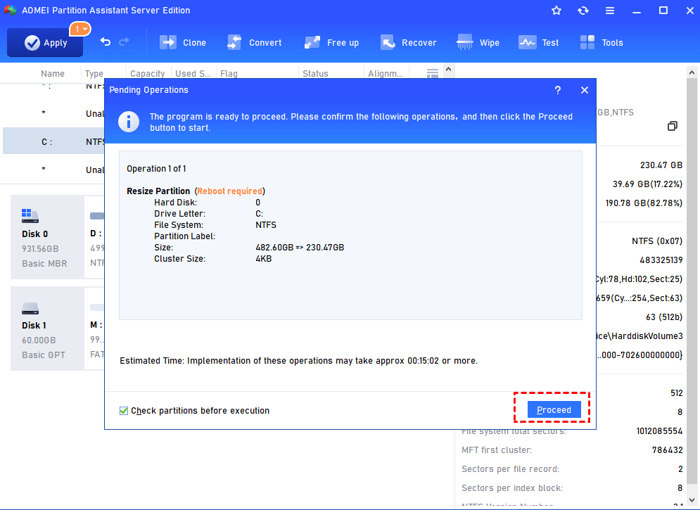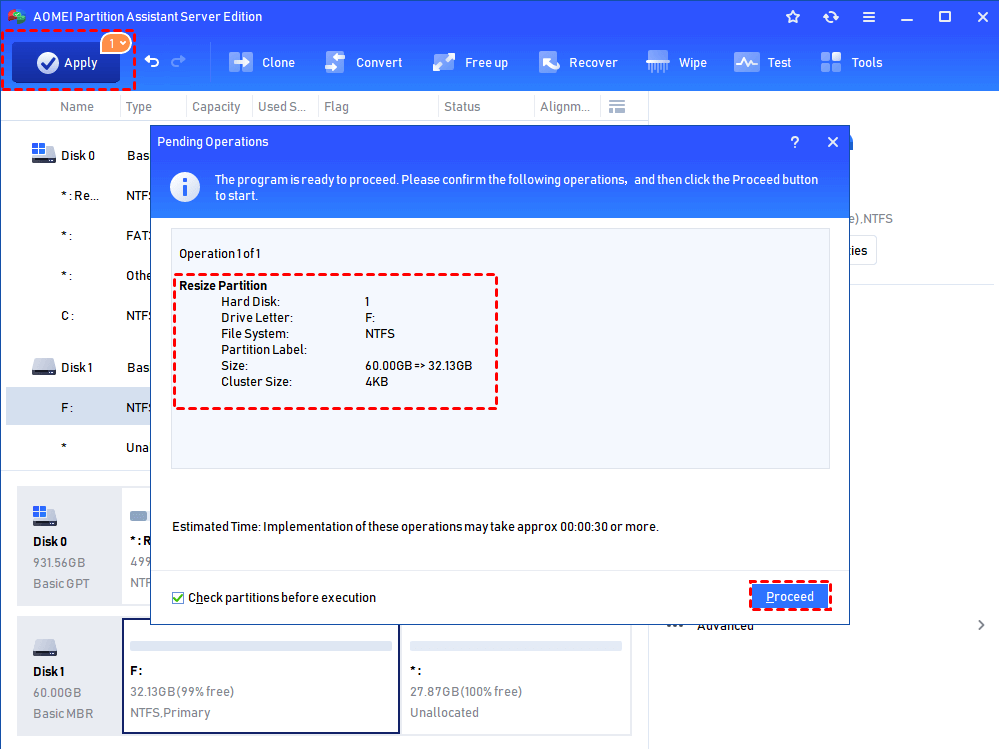 Step 3. And click “Apply” > “Proceed” in the main interface to commit the operation.