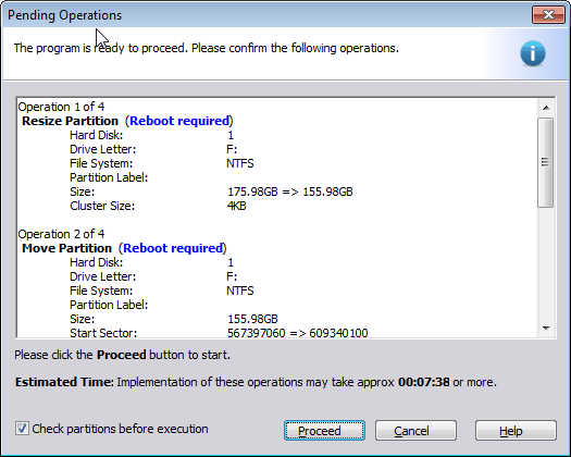 Step 3. Click “Apply” and “Proceed” to commit the pending operation.