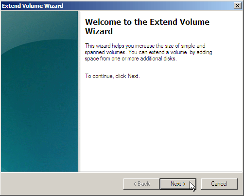 Step 2. The “Extend Volume Wizard” window will open up. Keep clicking on “Next” .