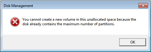 Create partition by built-in Windows 7 Disk Management, sometimes we will get following two messages: