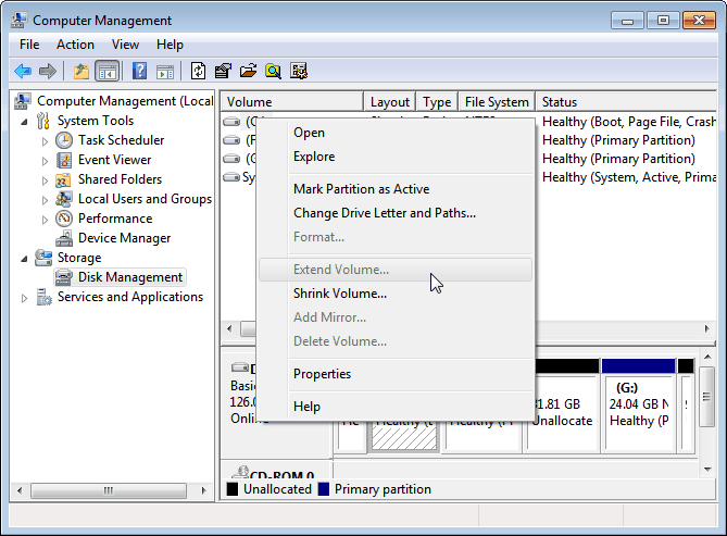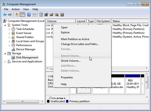 Disk Management built-in Windows 7 also called Local Disk Manager which provides an impressive graphical interface mapping to your local hard disks and partitions. It not only displays the details of your disks and partitions which can help you diagnose disk and partition problem, but also it can be used for performing disk-related tasks such as resizing partition (extending system partition or shrinking partition), creating, formatting, and deleting partitions, etc.