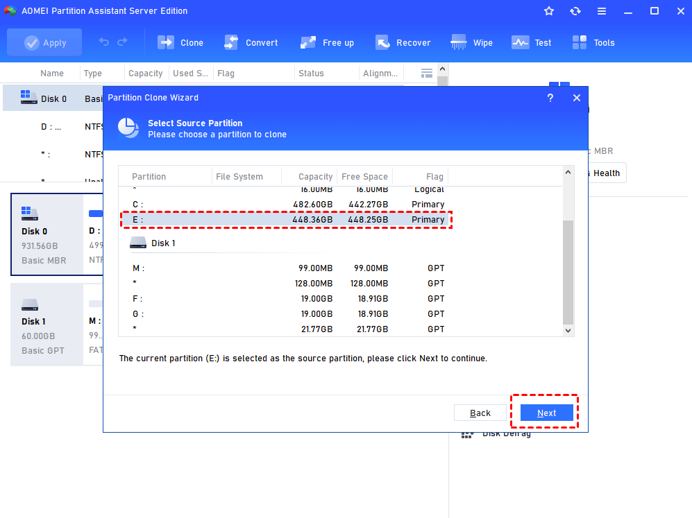Below are the detailed steps to clone Windows Server 2008 system partition to the new disk. Before you do, please make sure there is no unallocated space on the target hard drive.