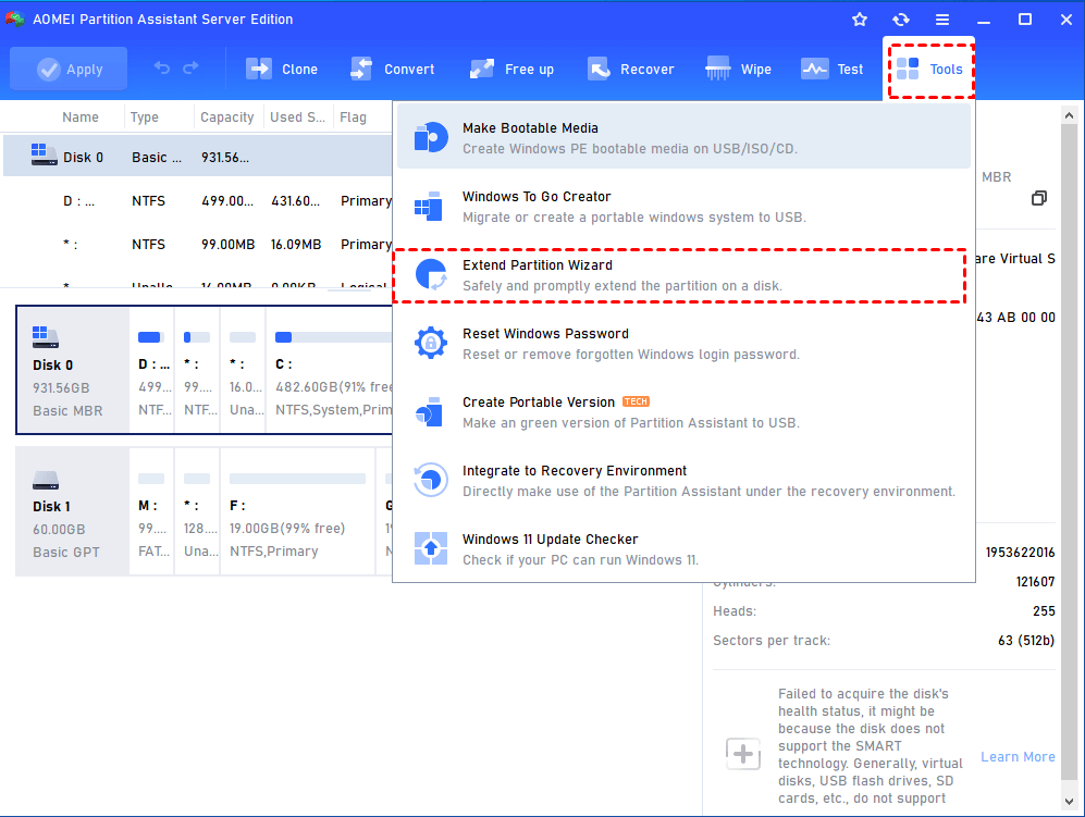 Besides that, as professional server software, AOMEI Partition Assistant Server also allows you to move insatlled apps to another drive, resize partition, extend partition, format partition, copy partition, wipe partition, and delete/create/shrink partition, clone disk, etc. Much more powerful than Diskpart.exe tool!