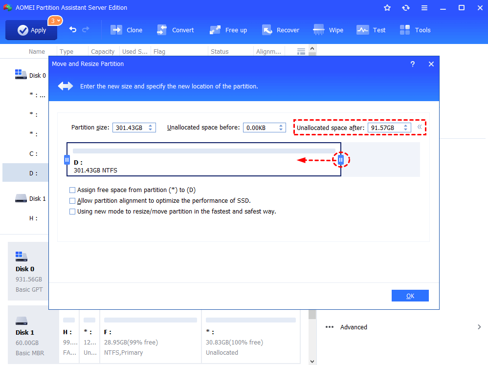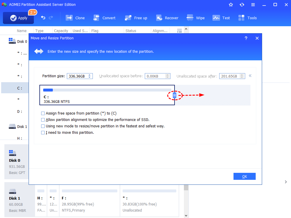 Tip: Even if you encounter the problem of not being able to resize BitLocker partition, AOMEI can help you solve it easily.
