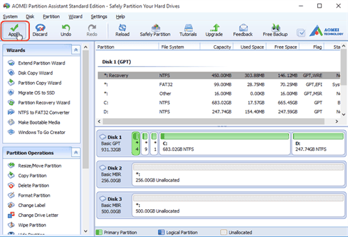 Step 4: Please remember to click "Apply" and "Proceed" to commit.